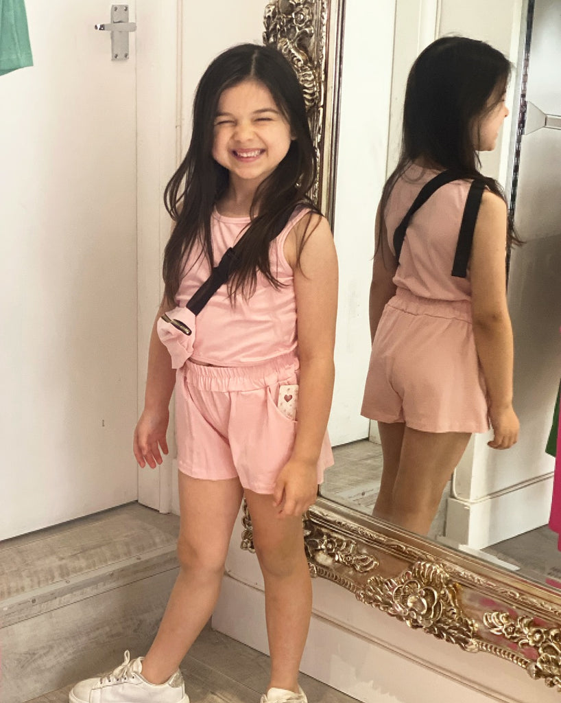 Pink Jasmine Shorts Set with Belt Bag