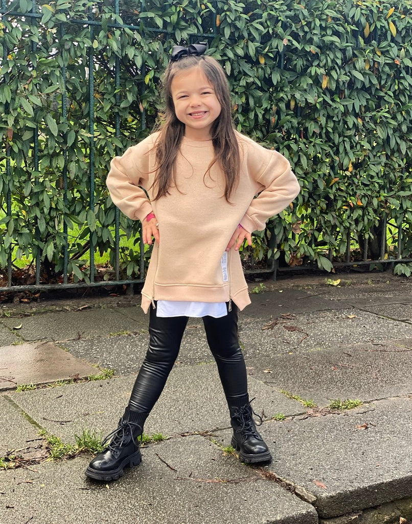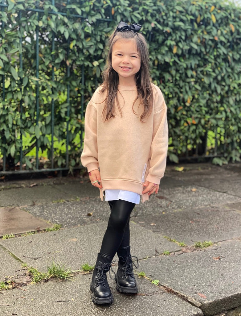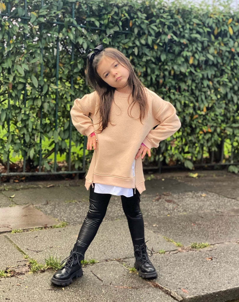 Ribbed neckline/hemline/cuffs with White Faux Shirt underlay.