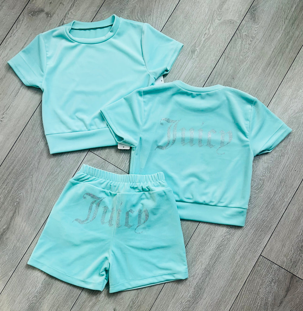 Mint Green Juicy Studded Shorts Set -
